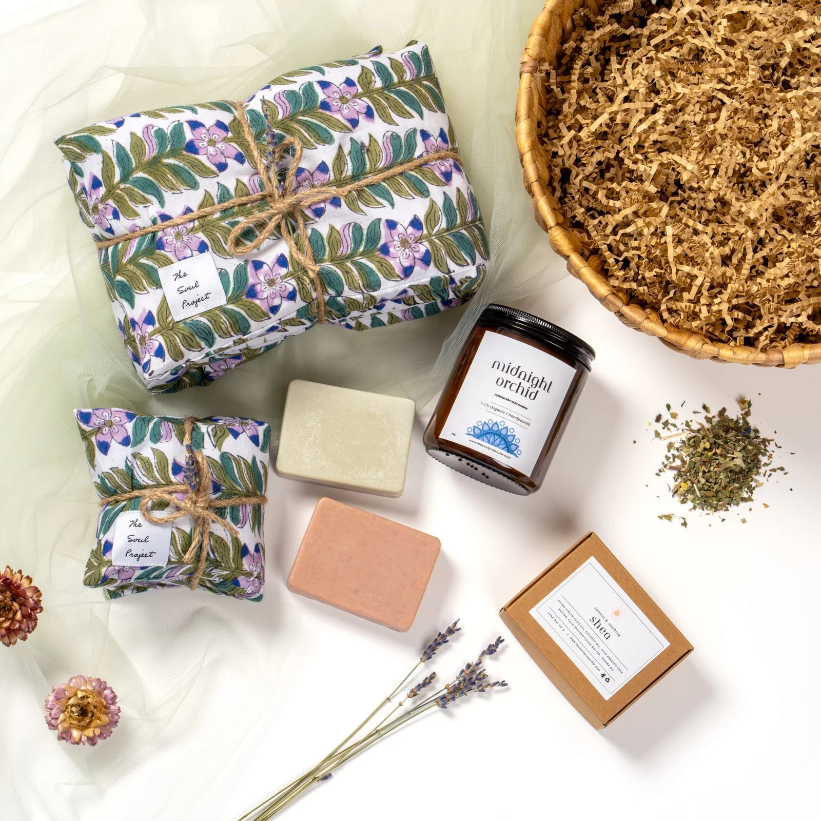 Create your own Self Care gift Select a minimum of three items Price starts at KD 5.250 inclusive of basket, packaging and small greeting card.